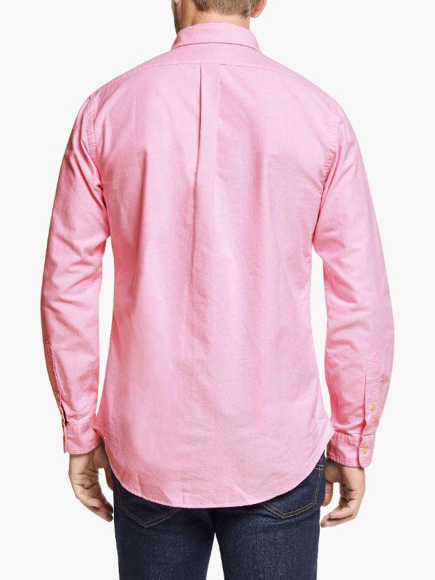 It features a curved hem, a button-down point collar and the brand's signature embroidered pony in a multi-shade to the left chest.